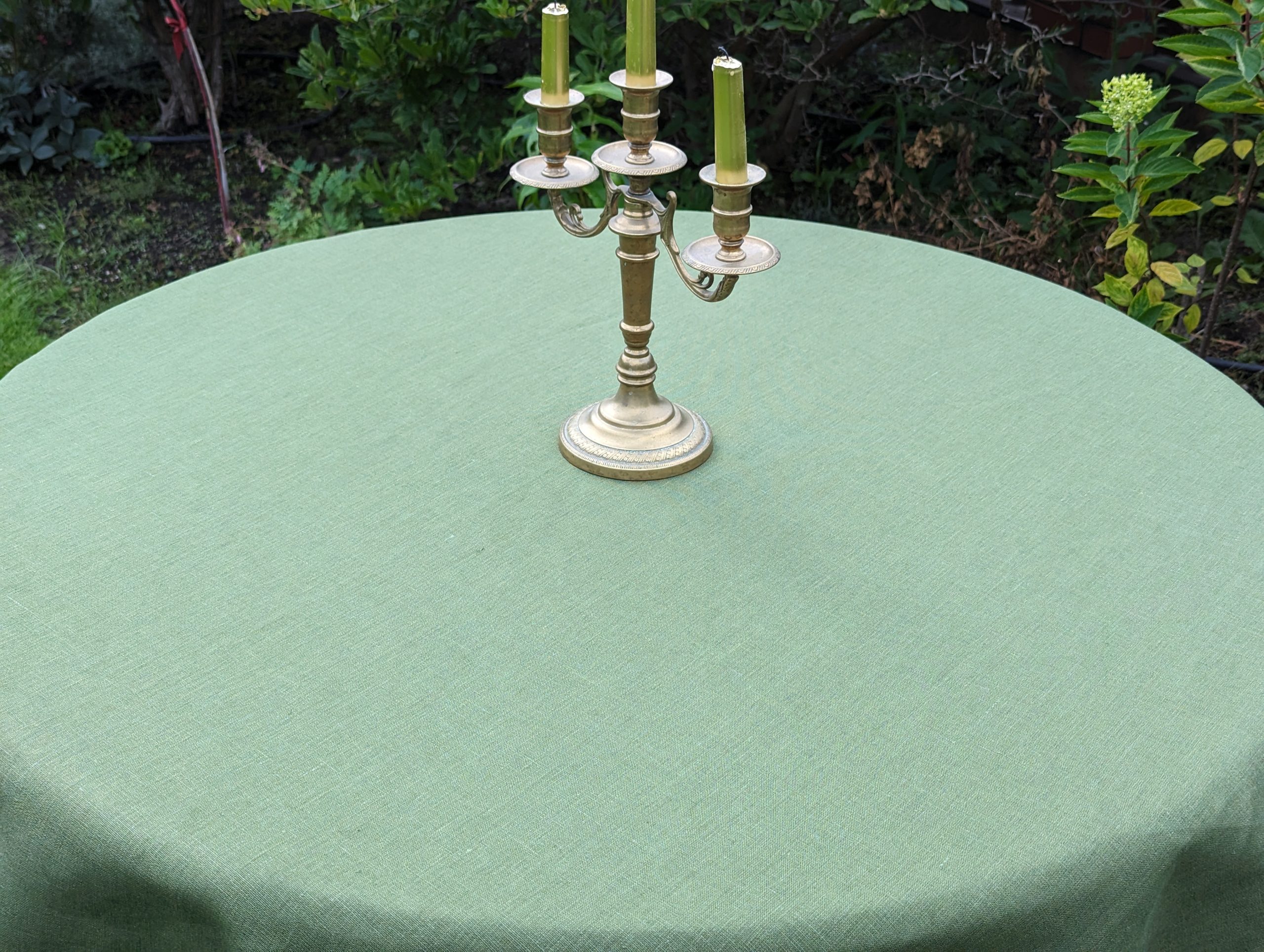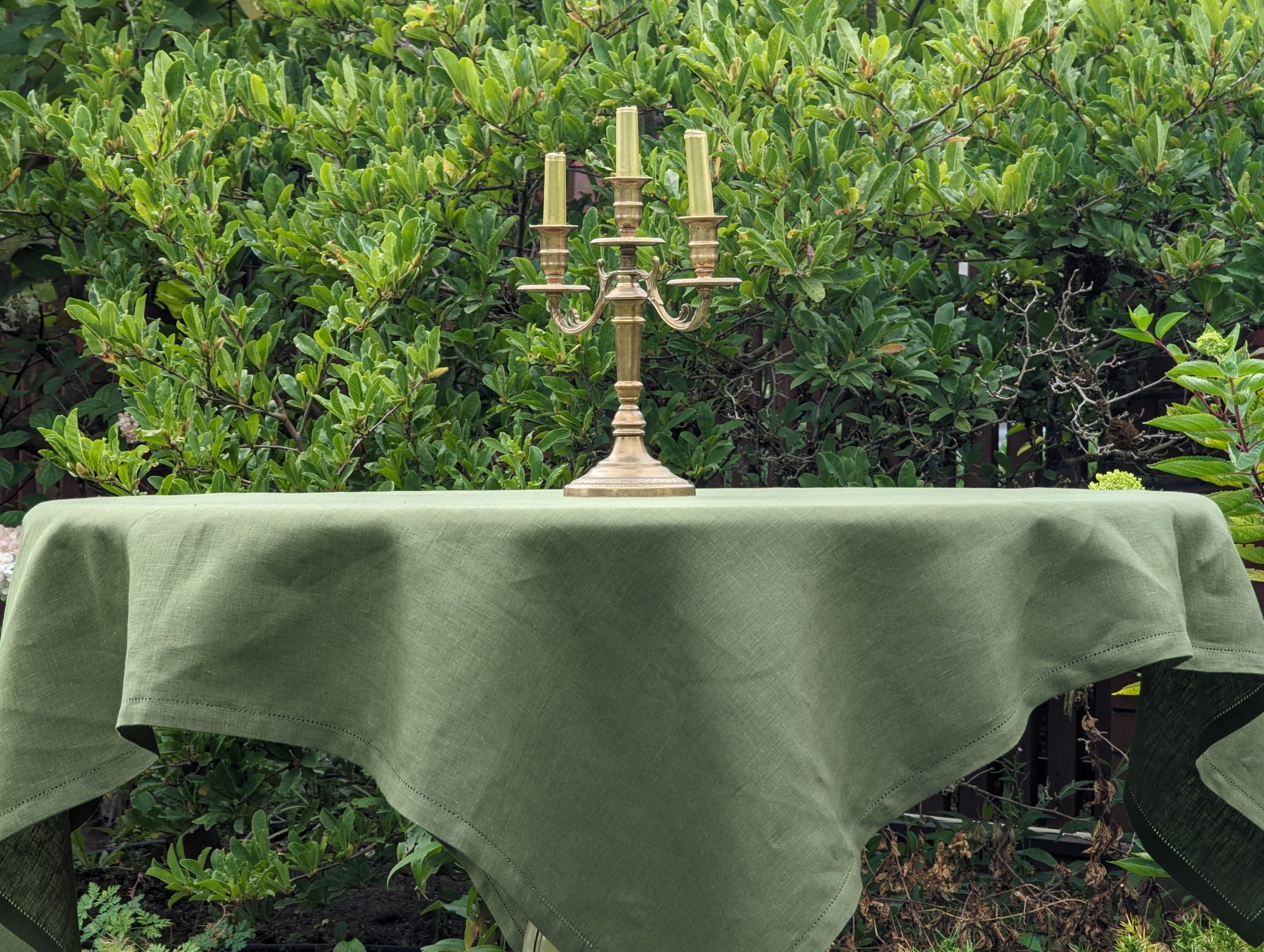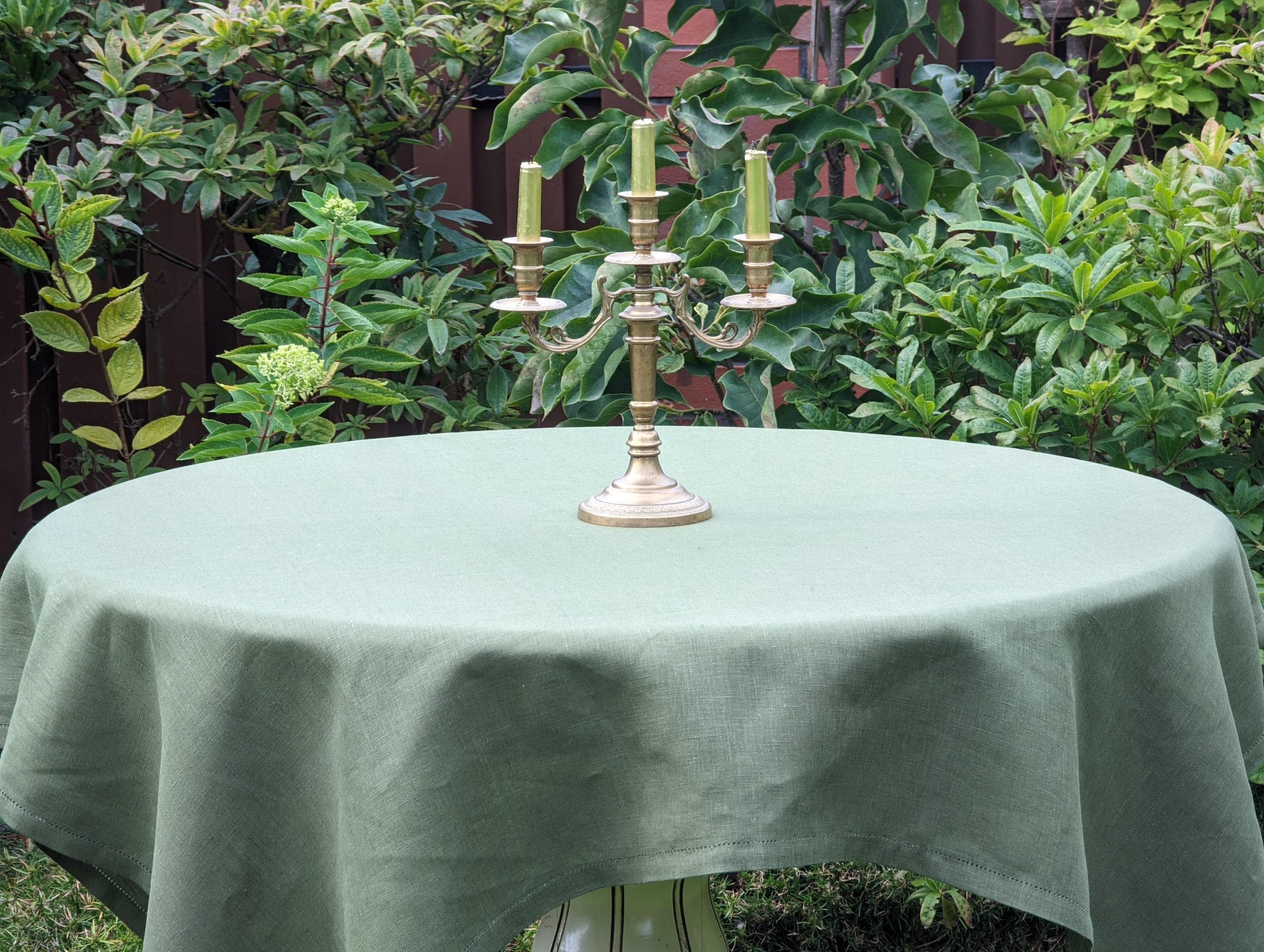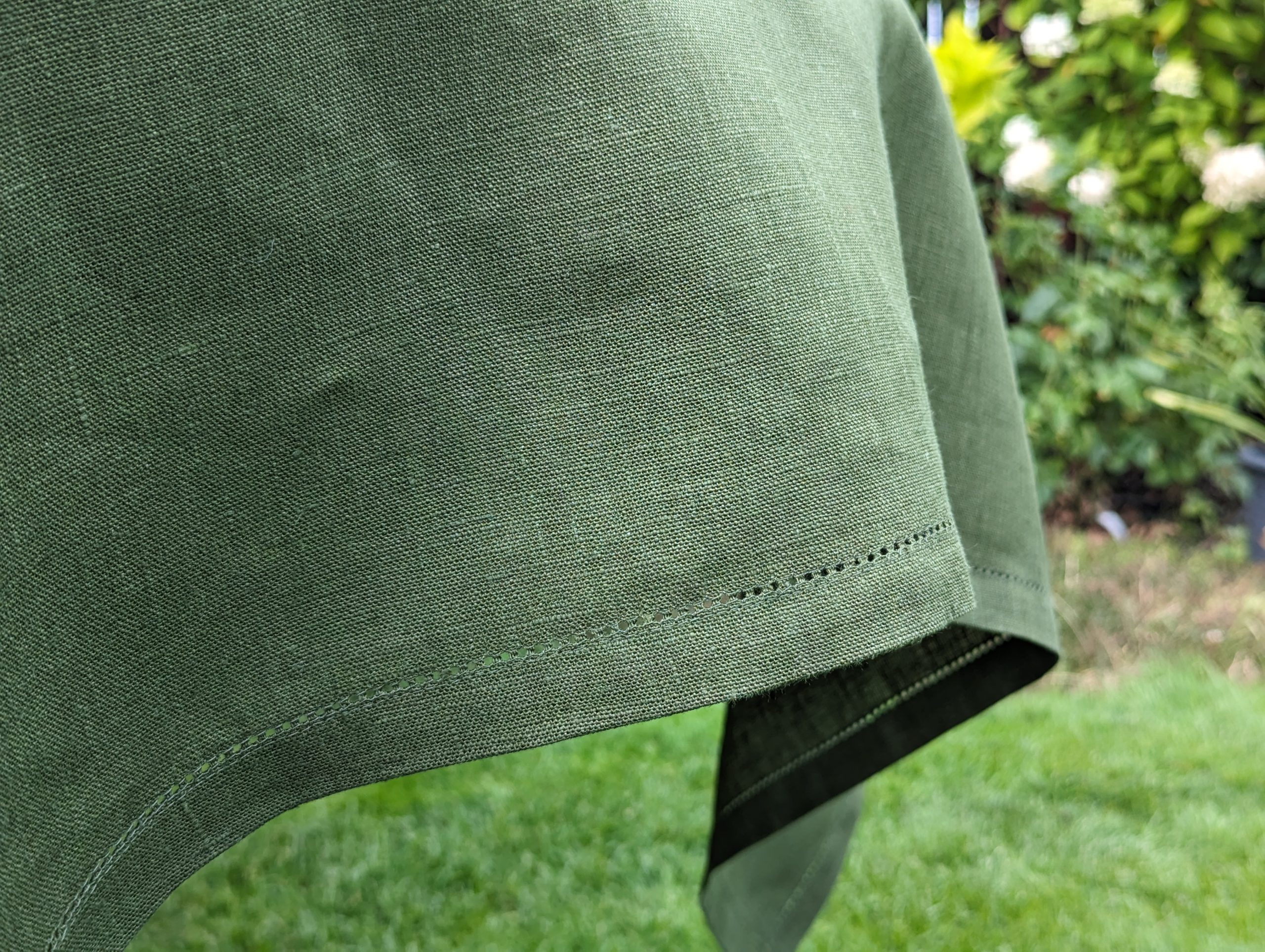 Green Linen Tablecloth with hemstitch